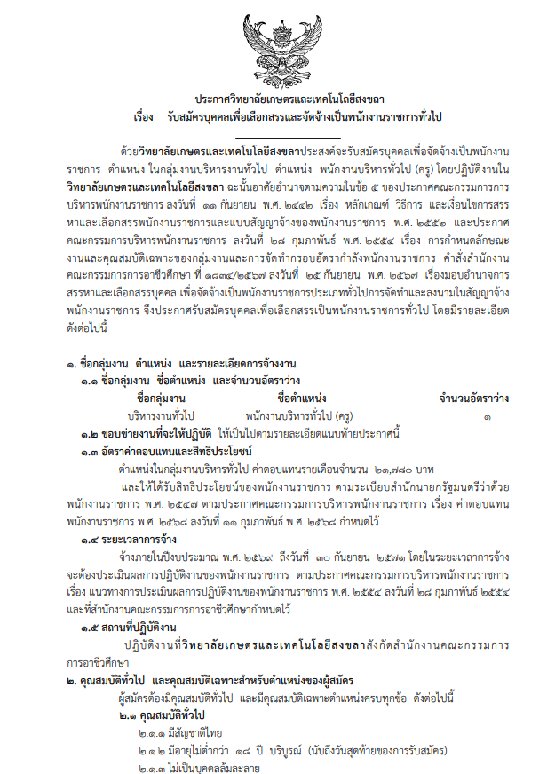 ประกาศรับสมัครบุคคลเพื่อเลือกสรรและจัดจ้างเป็นพนักงานราชการทั่วไป
