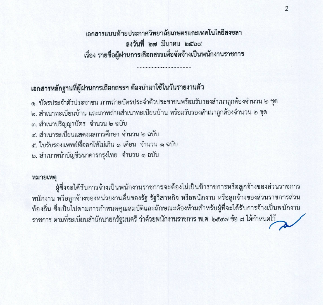 รายชื่อผู้ผ่านการเลือกสรรเพื่อจัดจ้างเป็นพนักงานราชการทั่วไป (ครู)